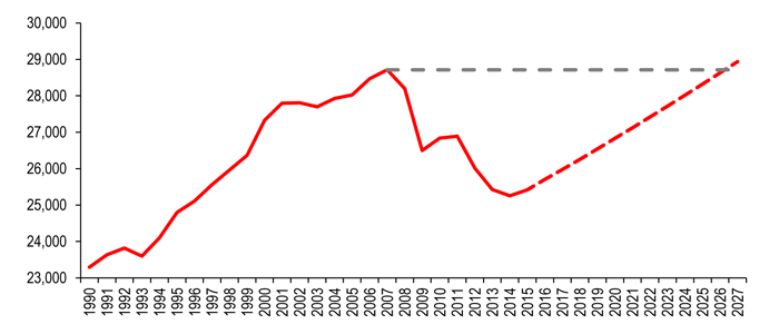 20 anni per tornare ai livello del PIL pro capite pre crisi
