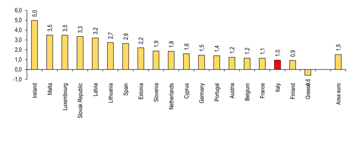(Var. % PIL a prezzi costanti – Elaborazione Ufficio Studi Confartigianato su dati FMI)