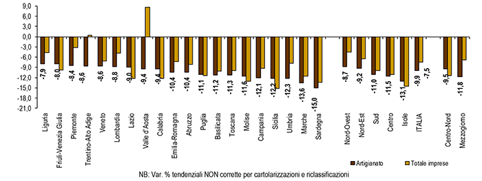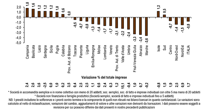 Dinamica dei prestiti all’artigianato e alle imprese nelle regioni
