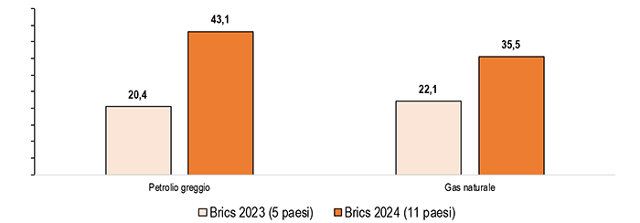 Quota dei BRICS della produzione mondiale di gas naturale e petrolio greggio