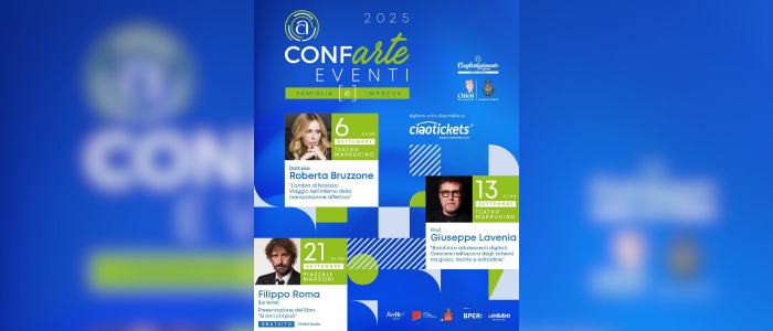 A settembre torna il ConfArte Festival, con la rassegna dal titolo “Famiglia [è] Impresa”. Tre gli ospiti d’eccezione che saranno protagonisti a Chieti in tre distinti appuntamenti: Roberta Bruzzone, Giuseppe Lavenia e Filippo Roma.