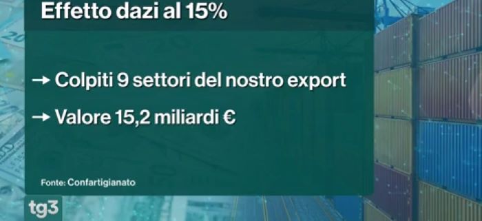 I nuovi dazi concordati tra Unione Europea e Stati Uniti avranno un impatto su 9 settori in cui l’Italia detiene il primato nell’Ue per il valore dell’export in Usa. Secondo una rilevazione di Confartigianato, questi settori, che esportano negli Stati Uniti 15,2 miliardi di euro sul totale di 67,3 miliardi di vendite italiane negli Usa, sono il cuore pulsante delle economie locali e dei distretti produttivi, forza motrice del Made in Italy.