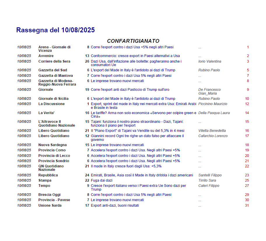Guarda la rassegna stampa dei quotidiani sul report di Confartigianato