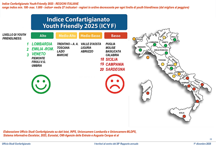 Lombardia, Emilia-Romagna e Veneto al top della classifica 2025 dell’Indice Confartigianato dei territori youth-friendly per impresa e lavoro dei giovani