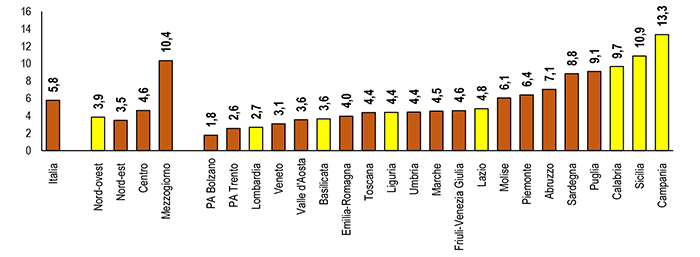 Tasso di disoccupazione per regione
