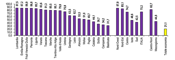 L’incidenza delle aree di verde urbano sulla superficie urbanizzata delle città nel 2023 è pari a 8,9 m2 di aree di verde urbano per 100 m2 di superficie urbanizzata. Le regioni in cui le città presentano oltre il dieci per cento di superficie desinata ad area verde sono la Lombardia (13,0%), Emilia-Romagna (11,7%), Piemonte (11,6%) e Friuli-Venezia Giulia (11,0%). All’opposto, le quote minori si osservano in Sicilia (5,6%), Molise (5,5%), Liguria (4,9%) e Puglia (4,8%).