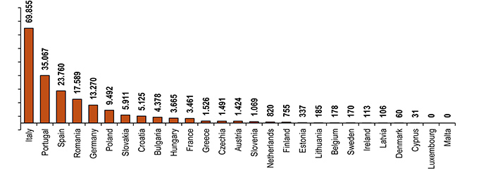 Italia leader in Europa della calzatura grazie alle MPI – L’Italia è il principale polo europeo della calzatura, collocandosi al primo posto tra i 27 paesi dell’Unione europea per numero di occupati nella fabbricazione di calzature, davanti a Portogallo e Spagna. In Italia il peso dell’occupazione nelle micro e piccole imprese (MPI) è del 54,7%, superiore di quasi dieci punti percentuali al 45,0% della media UE.