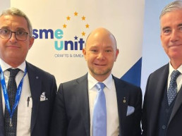 Il Presidente di Confartigianato Marco Granelli, il Segretario generale Vincenzo Mamoli e il Delegato all’Europa di Confartigianato Imprese Luca…
